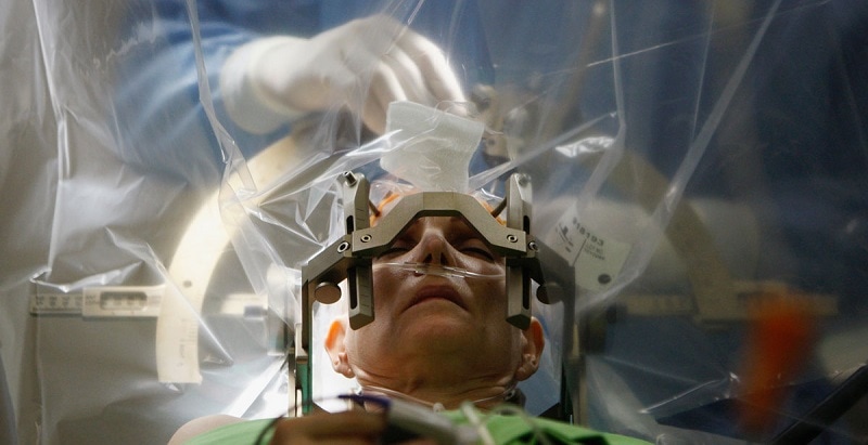 - Bryant Gumbel demande au patient Greg Grindley comment il se sent durant la stimulation cérébrale profonde et qu’il répond avec humour « Je me sens bien. Content d’entendre que j’ai un cerveau normal. »