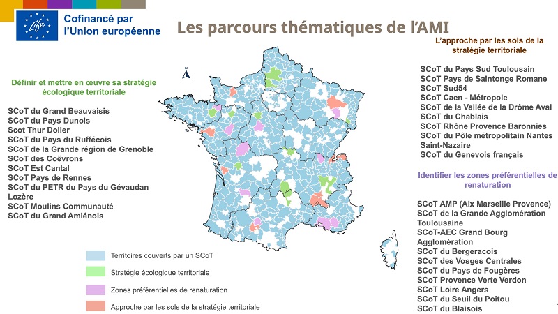 Chacun des SCoT participants prendra part à des ateliers de travail animés par la Fédération, avec l’appui d’experts comme EoTerra, bureau d’études spécialisé en écologie, ou encore des partenaires tels que la Fédération des Parcs Naturels Régionaux, l’Association Nationale des Établissements de Bassins (ANEB), SNCF Immobilier et l’OFB.