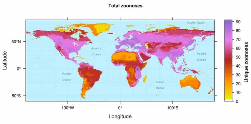 La carte mondiale des zoonoses (comprenant tous les mammifères)