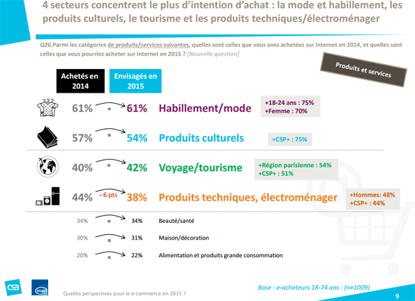 Le marché du e-commerce en France représente 9% du commerce de détail hors produits alimentaires.