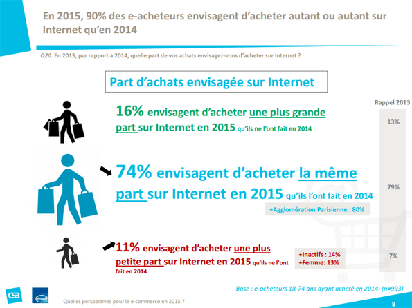 Ces résultats sont légèrement supérieurs aux attentes grâce à une fin d’année meilleure que prévue avec des ventes de Noël qui cette année ont atteint 11,4 milliards d’euros soit 13% de plus que l’an dernier sur la même période. Les e-commerçants ont su tirer parti de cette période d’achat exceptionnelle comme le montre l’excellent taux de satisfaction de 99% mesuré dans l’étude CSA réalisée juste après les fêtes.
