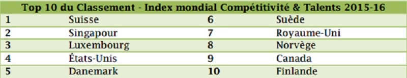 La Suisse occupe ainsi la première place du classement, suivie de Singapour (2ème) et du Luxembourg (3ème). La France quant à elle se hisse à la 22ème place du classement.