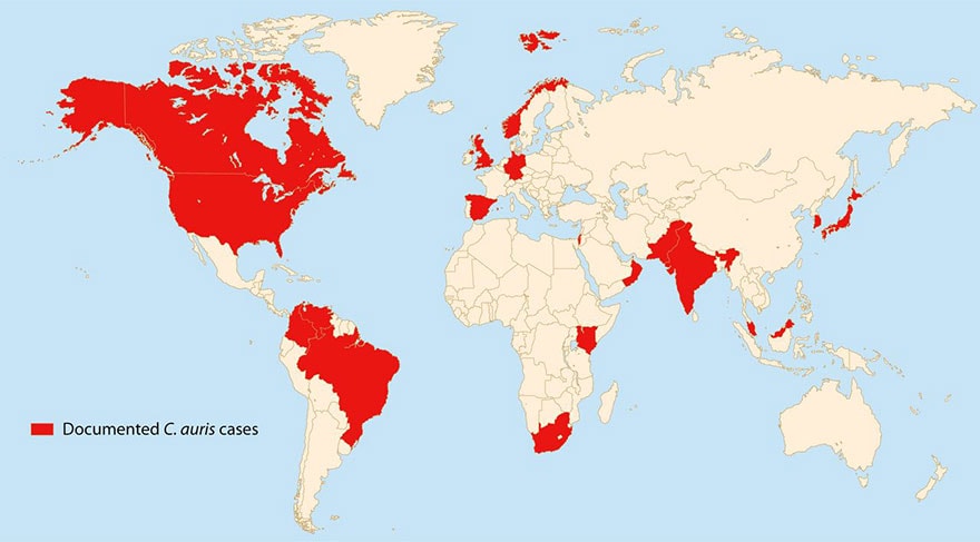 L’émergence de ce pathogène semble due à la pression de sélection des antifongiques. Le séquençage complet du génome de 47 souches isolées de différents points du monde a révélé qu’elles variaient considérablement d’une région à l’autre, suggérant que C. auris était apparu simultanément et de façon indépendante dans au moins quatre endroits de la planète avant de diffuser autour de son point d’émergence. Les différences entre les quatre souches sont si profondes qu’elles suggèrent que celles-ci auraient divergé il y a des milliers d’années. Elles seraient devenues des agents pathogènes résistants issus de souches environnementales inoffensives à quatre endroits différents en même temps. « D’une manière ou d’une autre, il a apparemment fait un bond presque simultanément, et a semblé se propager et il résiste aux médicaments, ce qui est vraiment ahurissant », a déclaré au NYT le Dr Snigdha Vallabhaneni, experte en champignons et épidémiologiste au CDC.