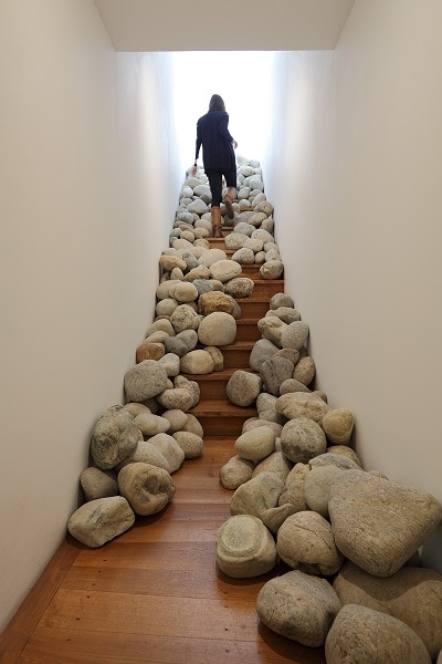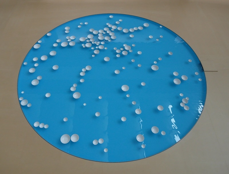Des terrasses de la fondation jusque dans ses entrailles, le verre, l’eau, le minéral sont déployés. À la fois minimale et sophistiquée, l’œuvre de Céleste Boursier-Mougenot est une savante fusion entre science et fiction. Précurseur de rencontres improbables du Vivant avec des objets manufacturés qui peuplent notre monde et auxquels il accorde un supplément d’âme, Céleste Boursier-Mougenot façonne ses œuvres hybrides avec la maîtrise d’un artisan et « l’irrationalité » d’un ingénieur.