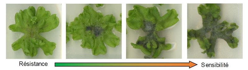 Dans les boîtes de culture, le face-à-face est silencieux mais spectaculaire. Très vite, les observations se multiplient : certaines hépatiques sont littéralement colonisées, recouvertes d’un feutrage gris de mycélium. D’autres semblent presque indifférentes, comme si le champignon glissait sur elles. Même espèce. Même attaque. Réponses opposées. Il y a là un indice majeur.