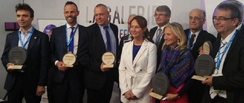 171 entreprises ont présenté leur candidature pour cette première édition. Un jury de sélection finale, présidé par Hervé LE TREUT, climatologue, directeur de recherches au CNRS et contributeur du GIEC, a ainsi récompensé sept lauréats, définis par la Ministre comme étant des acteurs phare dans la lutte contre le changement climatique : « La COP 21 a réuni 150 chefs d’Etat et de gouvernement, c’est un moment unique dans l’histoire ! […] Et vous, ceux qui inventez les solutions, vous êtes à l’avant-garde de ce combat. »
