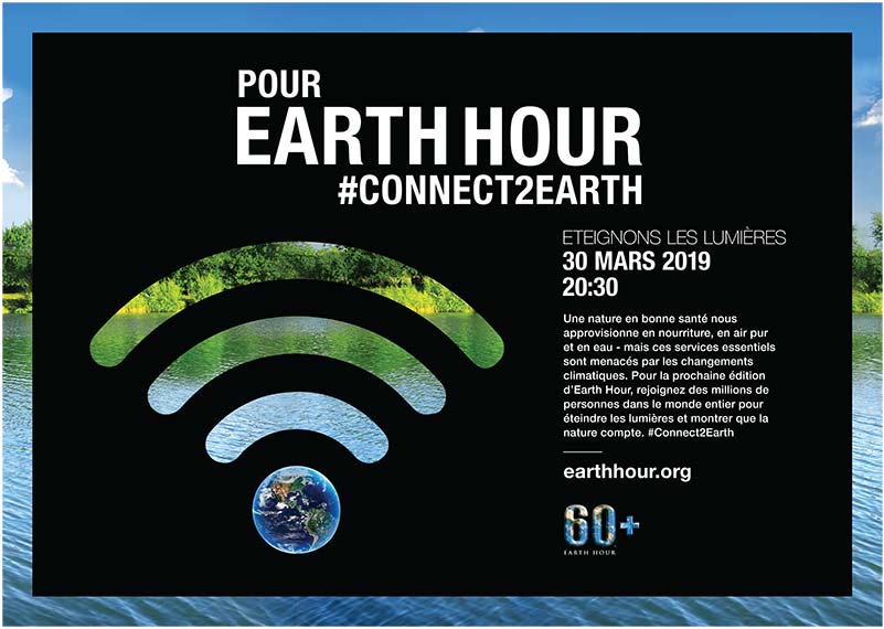 Lancée par le WWF en 2007, Earth Hour – 60 minutes pour la planète – est la plus grande mobilisation citoyenne en faveur de la protection de la planète. Chaque année, plusieurs millions de personnes éteignent symboliquement leurs lumières, pendant une heure et à partir de 20h30. Les villes sont aussi nombreuses à se mobiliser. L’année dernière, de Singapour à Honolulu, en passant par Sydney, Moscou, Londres, Paris, New York ou encore Washington, ce sont près de 7000 villes dans 187 pays qui ont éteint leurs édifices emblématiques.
