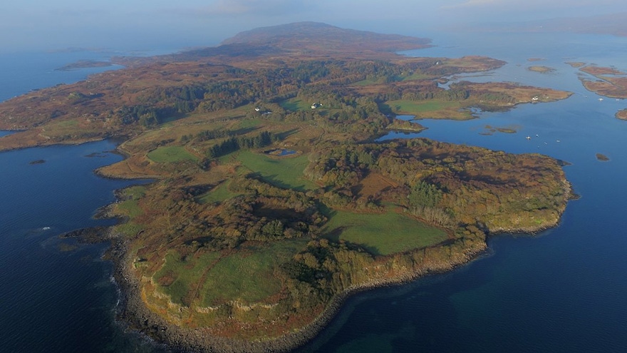 L’annonce avait fait rêver plus d’un. À vendre : île d’Ecosse, une vingtaine de km2, avec un manoir et une douzaine de propriétés, des menhirs de basalte, des plages, des paysages à couper le souffle, aucune route goudronnée, éloignée de la société de consommation (pas de pubs ni de magasins) mais riche de homards, langoustines et crabes dans ses eaux côtières.