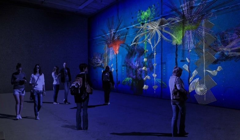Cette installation s’inspire de la faune et flore sous-marine, telles que les algues, les anémones. Des plantes aquatiques et des coraux géants de différentes couleurs et formes se génèrent aléatoirement à l’infini, et s’épanouissent avant de disparaître sous les yeux des visiteurs. Véritables “fleurs des mers”, elles dévoilent des formes géométriques poussées a l’extrême. Cet univers aquatique intriguant réagit au passage du visiteur quand il se déplace, créant un étrange et mystérieux dialogue avec lui.