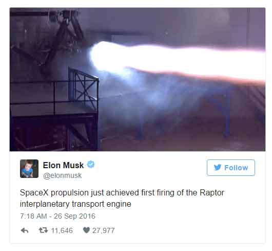 Mardi, lors d’une conférence de presse très attendue, Elon Musk a dévoilé sa vision : « transformer Mars en un « disque de sauvegarde » et sauver l’humanité ». Rien que cela. Cette annonce a eu lieu à l’occasion du 67e Congrès international d’astronautique qui s’est tenu à Guadalajara au Mexique. Mais avant de prendre la parole, Elon Musk avait partagé, dès lundi matin, sur Twitter, la première photo de « système de transport interplanétaire » (ITS) propulsé par un moteur de fusée d’une puissance inédite : le Raptor.