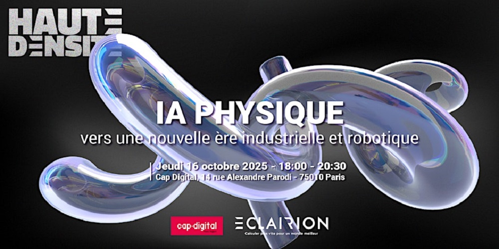 Dans le cadre du cycle d’événements « Haute Densité » (1), Cap Digital et Eclairion organisent une conférence le jeudi 16 octobre dédiée aux convergences entre robotique et intelligence artificielle : explorer le potentiel de l’IA physique et son impact sur l’industrie et la robotique.