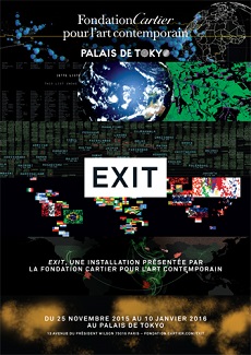 Exit est composée d’un ensemble de cartes animées, générées à partir de données statistiques portant sur les mouvements de population dans le monde et leurs principales causes. L’œuvre a été entièrement actualisée, à l’occasion de la Conférence sur le changement climatique des Nations Unies (COP21) organisée à Paris en décembre 2015. Cet événement décisif offre un contexte particulièrement pertinent à une œuvre dont les sujets sont inséparables de la question du réchauffement climatique : « C’est un peu comme si le ciel, et ses nuages, et sa pollution faisaient leur entrée dans l’Histoire. Non plus dans l’histoire des saisons – l’été, l’automne, l’hiver – mais dans l’histoire du peuplement, dans l’histoire de zones inhabitables pour une raison ou pour une autre, et pas seulement pour des raisons de désertification, mais pour des raisons de disparition, de submersion du sol. C’est l’avenir. » (Paul Virilio, 2009)