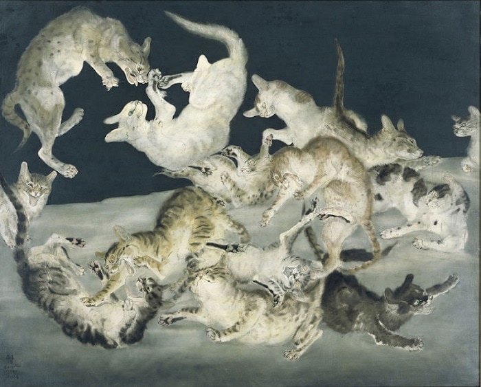 … Foujita a fait exception, il a su regarder avec ses propres yeux et peindre selon son tempérament, sans trop se soucier des autres. Il fut, à Paris, attiré plus par les perspectives que par les peintres et s’ingénia à décrire le petit paysage de faubourg et de banlieue avec une touchante minutie. »Sophie Krebs, commissaire de l’exposition et conservatrice générale du patrimoine au musée d’Art moderne de la Ville de Paris. »