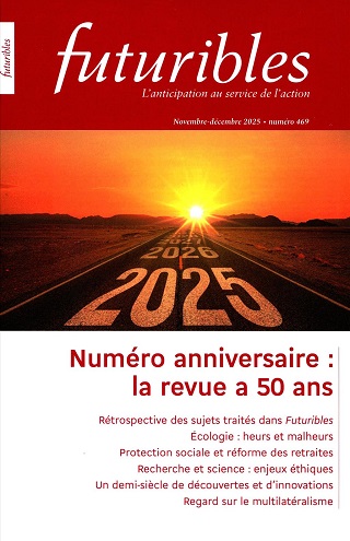 Le numéro 469 de Futuribles, paru le 27 octobre 2025, marque un cap : cinquante années d’analyses, d’anticipation et de prospective. « Depuis 1975, Futuribles n’a cessé d’explorer les futurs possibles, non pour prédire l’inévitable, mais pour éclairer ce qui pouvait être décidé. Cinquante ans plus tard, la mission reste la même : discerner les tendances, questionner les ruptures, et conserver cette liberté de pensée sans laquelle aucune prospective n’est possible. »
