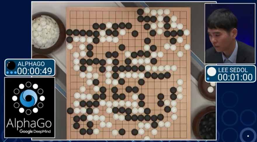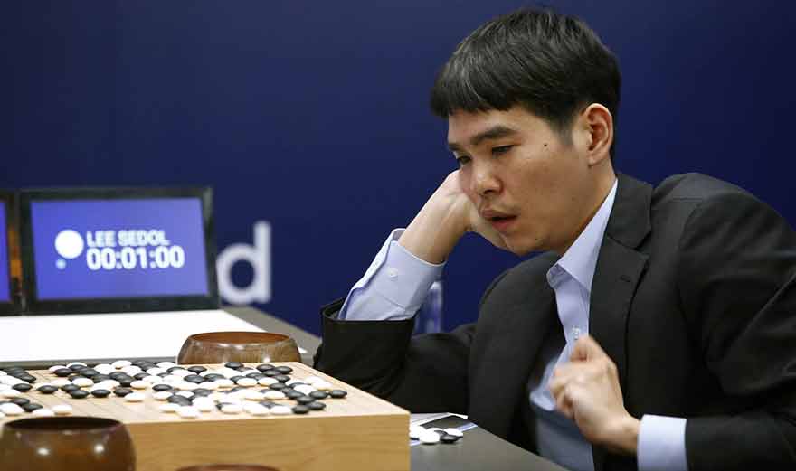 En mars 2016, un match en cinq manches a opposé une star du Go, le sud coréen Lee Sedol à AlphaGo, le logiciel de Google DeepMind. AlphaGo a gagné ses trois premières parties et a perdu la quatrième.