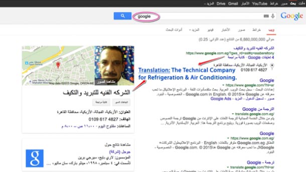 Les internautes tapant g-o-o-g-l-e, les six lettres les plus écrites sur le web, sur le moteur de recherche éponyme, voient s’afficher une liste de réponses avec, en tête, oui en tête, avant Google lui-même, le site de notre petit commerçant. Saber el-Toony, mieux référencé que Google !