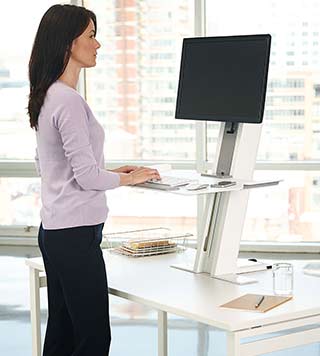 Le Quickstand : Il s’agit là d’une vraie nouveauté pour les solutions assis-debout. Utilisant un système innovant de ressort à force constante, le Quickstand permet un réglage sans effort et instantané entre la position assise et la position debout. On peut donc élever son poste pour travailler plus confortablement en ajustant à la fois la hauteur du plateau et celle de l’écran d’ordinateur.