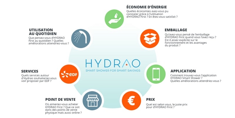 Même si Hydrao a reçu une récompense au CES de Las Vegas et est déjà commercialisé (99 euros), il est actuellement en bêta-test depuis le 3 novembre sur la plateforme d’EDF Pulse & You : La nouvelle version du produit est testée en exclusivité sur la plateforme pour permettre aux créateurs d’Hydrao d’optimiser et de rendre l’utilisation la plus agréable et utile possible. Des testeurs sont ainsi invités à partager leurs feedback sur plusieurs thématiques :