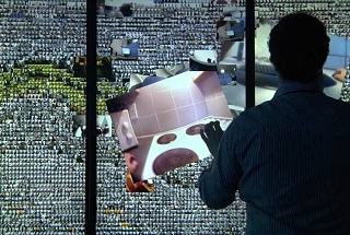 Grâce à un travail exceptionnel sur le graphisme, on appréhende l’image qu’à travers ces données. Les internautes filmés grâce à une caméra Kinect, se voient numérisés et transformés en lignes de code, dans un aller-retour constant entre le web et la réalité.