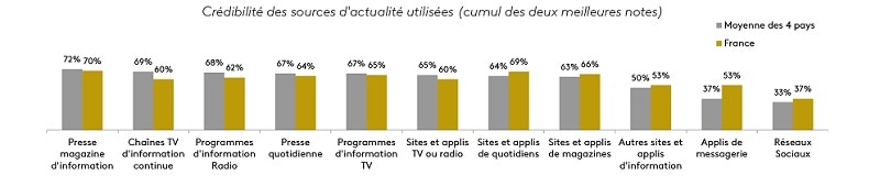 La confiance dans les médias traditionnels à travers les magazines et la télévision reste élevée, mais les Français sont plus méfiants envers les chaines d’infos en continu.