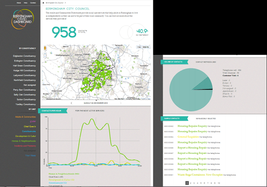 A Birmingham se mettent en place des tableaux de bord civiques qui a pour but de montrer les demandes que font les habitants à leurs administrations et d’évaluer leur traitement.