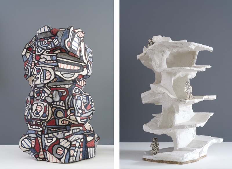 La section suivante se concentre sur le travail sculptural et architectural de Jean Dubuffet amorcé partir de 1966, année de sa découverte du polystyrène expansé. La Tour aux figures, mais aussi les différents projets imaginés pour son conditionnement intérieur sont présentés. Exposés dès 1968 lors de « Édifices » au musée des Arts Décoratifs en 1968, cette section revient sur la première révélation au public de la Tour aux figures.