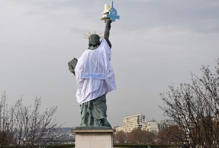 Pendant longtemps, la statue de la Liberté fut pour des millions d’immigrants la première main tendue des Etats-Unis. Elle reste aujourd’hui un symbole d’espoir, de solidarité. Une solidarité mise à l’épreuve un peu partout dans le monde. Alors, quoi de mieux que l’icône de la liberté pour rappeler la nécessité de plus de solidarités au cœur de la présidentielle française ? Ce 23 mars 2017, la réplique de la statue newyorkaise située sur l’Ile aux Cygnes à Paris, troque sa flamme contre un index levé pour répondre Présent ! à l’Appel des Solidarités.