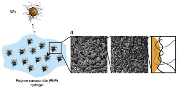 Eric A. Appel, Mark W. Tibbitt, Matthew J. Webber, Bradley A. Mattix, Omid Veiseh, Robert Langer. hydrogels auto-assemblées en utilisant des interactions polymère nanoparticules. Nature Communications, 2015; 6: 6295 DOI: 10.1038 / ncomms7295.