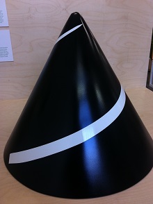 La spirale est un indicatrif visuel qui permet au personnel d’aéroport de savoir si la turbine d’un avion est en marche ou à l’arrêt. Dans le tumulte ambiant et avec les casques antibruit, il n’est en effet pas possible d’isoler le bruit d’un turboréacteur en particulier. Si la spirale n’est pas visible, le personnel au sol peut être sûr que la turbine est en marche. La spirale a été retenue (plutôt que la croix, la ligne ou le cercle) car c’est la forme qui disparaît le moins vite en rotation. Pour bien la distinguer, il faut que la turbine soit à l’arrêt complet. Et quand elle tourne sur elle-même, la spirale a un effet hypnotique qui attire l’oeil instantanément. Elle permet ainsi d’apporter une solution d’une grande simplicité à un problème de sécurité, sans engager de grandes dépenses.