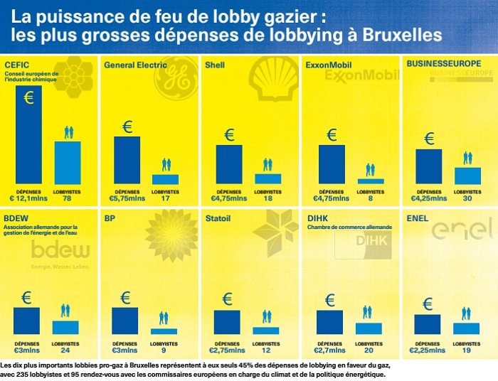 Pour Pascoe Sabido, chargée de campagne climat au Corporate Europe Observatory, « cet intense lobbying a conduit les décideurs européens à reprendre à leur compte l’affirmation infondée selon laquelle le gaz serait un carburant « propre » complémentaire aux énergies renouvelables, justifiant ainsi la construction d’une nouvelle génération d’infrastructures gazières totalement inadaptées ; il est temps que l’UE tienne le lobby gazier aussi éloigné que possible des espaces de décision, que ce soit à l’ONU, à Bruxelles ou dans les capitales européennes ».