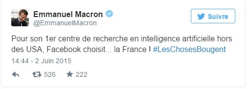 C’est dans ce contexte que s’inscrit l’information qui fait le tour des médias en France : Facebook implante son laboratoire d’intelligence artificielle (IA) à Paris. A grand renforts de communiqués, le gouvernement crie sa joie et la plupart des observateurs de la scène technoscientifique se gorgent d’un orgueil pour une fois bien placé. Oui, en France, nous avons des talents, nous avons des cerveaux. Regardez, même les américains nous veulent !