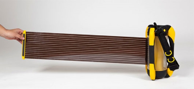 Alors que les lampes solaires à puissance équivalente sont le plus souvent équipées d’un panneau solaire à transporter à part, ce concept de lampe comporte un module photovoltaïque organique souple entièrement intégré à la lampe. Il se déroule facilement pour récupérer l’énergie solaire et peut s’enrouler lorsque la lampe n’est plus exposée au soleil ou afin de faciliter son transport.
