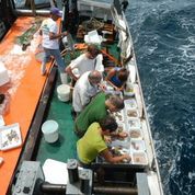 Le volet marin s’est déroulé en deux temps : une campagne hauturière à bord de l’Hermano Gines (juillet-août 2014) au cours de laquelle ont été échantillonnés le plateau continental et ses accores jusqu’à 650 m de profondeur ; un volet côtier sur l’archipel des Iles du Salut (septembre-octobre 2014).