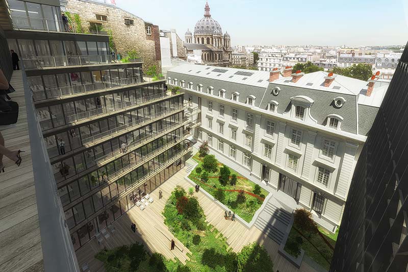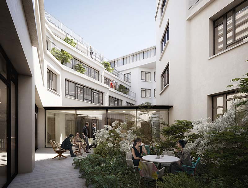 Mixité programmatique : L’explosion de logiques monofonctionnelles et la mutabilité formelle permettent l’émergence de coexistences inédites et fertiles. La mixité programmatique au sein d’un bâtiment mêlant logements (petits et grands, à baux longs ou courts, destinés à la location ou à la propriété), espaces de travail (de coworking ou d’entreprises), équipements sportifs, boîtes de nuit, espaces culturels et de commerce, services, conciergeries… assure une activité 24h/24 attractive pour un public hétérogène. Cette complexité fonctionnelle, cette coexistence sociale est d’autant plus féconde qu’elle s’ouvre sur l’extérieur.
