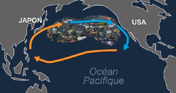 Une étude récente (M. Eriksen, PlosOne 2014) estime qu’au total cinq mille milliards de particules flottent dans nos océans. Des chercheurs ont également estimé (Jambeck, Science 2015) que sur les 300 millions de tonnes de plastique produites dans le monde chaque année, 8 millions de tonnes finissent piégées dans les gyres sub-tropicaux (tourbillons où les courants contribuent à concentrer les débris rejetés dans les eaux).  Sous l’effet de ces gyres océaniques, les déchets des quatre coins du monde s’accumulent en cinq principaux endroits du globe, dont la spectaculaire Grande plaque de déchets du Pacifique. « À l’image d’un puissant siphon marin, le vortex attirerait vers lui tous les résidus de notre société », vulgarise le site notre-planete.info. Avec des conséquences désastreuses pour les écosystèmes présents : « Dans cette zone la plupart des morceaux de plastique sont très petits. […] En fait ils ont la même taille que le plancton dont se nourrissent les poissons. Pire encore, en 2025 ce chiffre sera multiplié par 10 ; soit 80 millions de tonnes de plastique déversées chaque année dans les océans. »