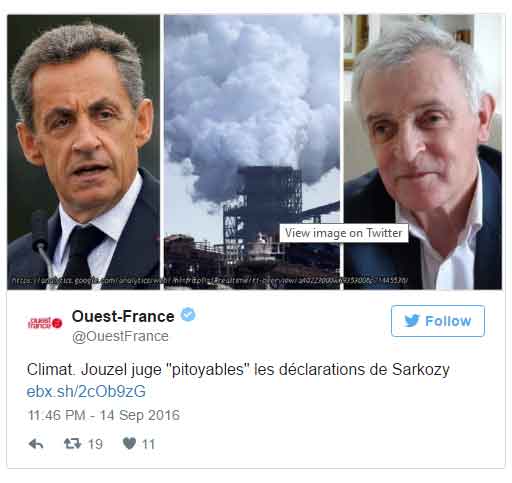 En adoptant de tels propos – atypiques dans le discours politique en Europe continentale – l’ancien chef de l’État français fait sienne la rhétorique climatosceptique déjà à l’œuvre chez certains responsables politiques américains, à l’image de Donald Trump. On se rappelle que l’une des promesses du candidat à la présidentielle outre-Atlantique consiste à annuler l’accord de Paris sur le climat.