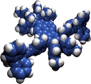 Synthétisée par l’équipe de Christian Joachim au CEMES de Toulouse, cette nanobrouette, avec ses deux roues, ses deux bras et ses deux pieds, est capable d’accrocher un atome sous elle et de le déposer plus loin. Ces nanomachines qui pour l’instant doivent être poussées avec une nanopointe pour avancer, annoncent peut-être les nanorobots de demain. © CEMES / CNRS