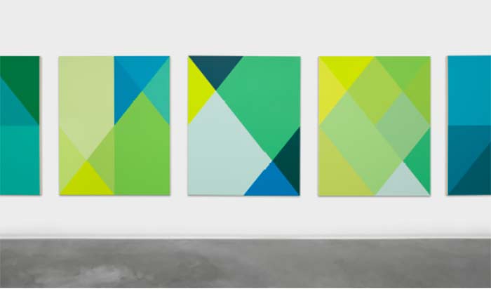 Le plus souvent, tout dépend du lieu et des possibilités d’intervenir sur son architecture. Et effectivement, je pense la peinture dans un environnement « installé ». Lorsque je conceptualise une pièce, son accrochage et l’environnement dans lequel elle sera présentée sont tout aussi importants. Le temps des expositions me permet de développer de nouvelles séries liées à des lieux et à des moments précis. C’est une manière de mettre à jour mes recherches.