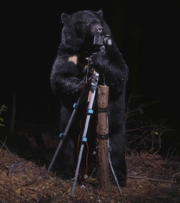 La tendresse est aussi à fleur d’image chez Manabu Miyazaki, le grand spécialiste de la captation visuelle des animaux. Le poète photographe nous impressionne avec son diaporama Animal trail (le chemin animal) qui surprend un ours, un renard, un blaireau , ou …un touriste toujours sur le même chemin, témoignant que nous cohabitons avec des drôles de bêtes, souvent  sans le savoir. Un autre diaporama Death in Nature montre le recouvrement tranquille et lent d’un squelette animal par la neige. Comme si la nature secrétait le linceul blanc qui remet l’animal en terre. Mais l’œil de l’observateur n’oublie pas la place de l’être défunt.