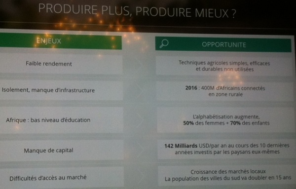 Pour Lionel Zinsou, Président de la fondation Franco-Africaine, « L’agriculture en Afrique, devra nourrir 2 milliards d’habitants supplémentaires d’ici 25 ans. Il n’y a pas eu de précédent à ce jour. On ne peut donc plus importer ou faire avec des solutions venues d’ailleurs. Tout sera nouveau ! Il faut donc inventer… »