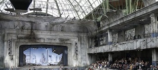 Tout comme Chanel Haute Couture sous la verrière du Grand Palais de Paris présentait dans un décor de théâtre en ruine sa collection automne-hiver 2013-2014 : un sol recouvert de gravas, des bancs effondrés …