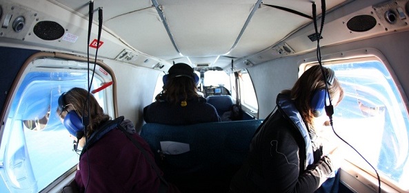 ▪ 2 observateurs relèvent des observations à l’œil nu à travers un hublot-bulle (qui permet une observation à la verticale de l’avion) ; le navigateur-secrétaire saisit les données et assure le déroulement du plan de vol.