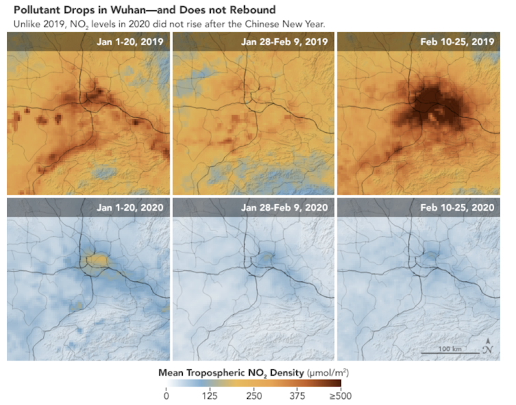 Image satellite de la chute de la pollution à Wuhan en Chine. NASA