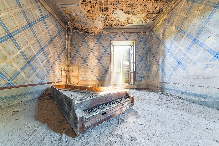 Dans cette exposition exceptionnelle, les jeux de lumières, les matières vieillissantes, les perspectives et structures architecturales sont mis en évidence et magnifiés. Le silence, omniprésent, fait émaner de ces photographies une atmosphère énigmatique, questionnant le spectateur sur la vie passée et l’esprit de ces lieux.