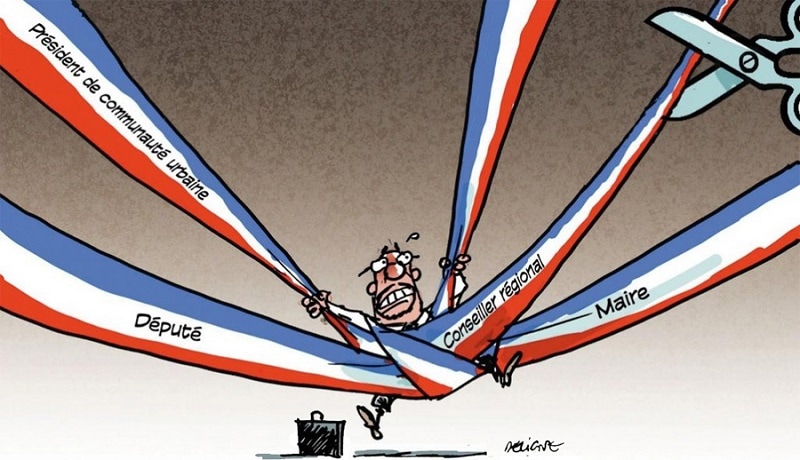 – Je réponds : Comment croire à la démocratie qui légalise la corruption des cumuls des mandats dans l’espace et le temps ? Le cumul des mandats multiplie les places où un seul peut s’assoir au motif qu’un mandat national donnerait du poids à un mandat local, et inversement. – Vous conviendrez, n’est-ce pas, que le cumul à strapontins multiples permet de nous libérer de la tutelle des partis. – Un peu, c’est vrai, mais à quoi sert le Sénat, si ce n’est à représenter le territoire ? Quant au même siège occupé pour la nème fois, la démocratie s’incline devant  les fesses toutes choisies de l’aristocratie élective. La plupart des préposés du peuple font carrière en oubliant leur commettant. Ce sont de vieux chevaux de retour. Ils ne représentent plus qu’eux-mêmes. Ils occupent une sinécure et parlent au nom du peuple pour défendre leur rentrée d’argent. Bravo ! C’est bien joué. On vient les remercier. On les félicite. On leur demande des autographes. Ils en sont presque émus, ils y croient presque eux-mêmes, méprisant au fond d’eux-mêmes les électeurs qui les adulent et ne partagent pas leur table.