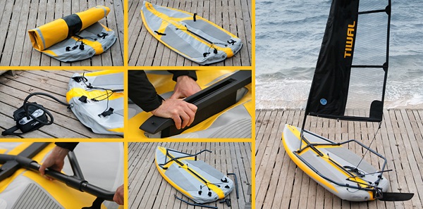 A la mer ou sur un lac, une fois au bord de l’eau, le montage est très simple et sans outil. En moins de 20 minutes, le Tiwal 3.2 est prêt pour prendre le large et puisqu’il a été enregistré comme une embarcation de catégorie D, il est prévu pour résister à des vents de force 4 sur l’échelle de Beaufort, soit une vitesse maximale recommandée de 28 km/h.