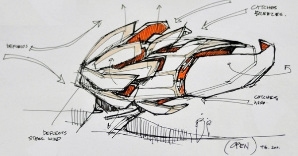 L’architecture cinétique sera-t-elle l’innovation qui constituera la base de l’habitat de demain ? Comment une maison peut-elle répondre à son environnement ? La réponse, dit Givens, la situe quelque part « entre les portes de garage, des fleurs, et la mentalité de survie d’une tortue ». Le design futuriste propose une navette de protections qui devient souterraine lorsque les conditions météorologiques extrêmes menacent la sécurité des habitants. Une série de leviers de commande hydrauliques activent les mouvements de la maison dans et hors du sol. Ils contrôlent également la peau extérieure qui peut se déformer en fonction des stimuli externes et se protéger des forces destructrices, comme les vents de haute vitesse. La conception a son propre instinct de survie qui est déclenchée par les vents d’orages ou les tornades à laquelle il répond en se mettant hors de danger.