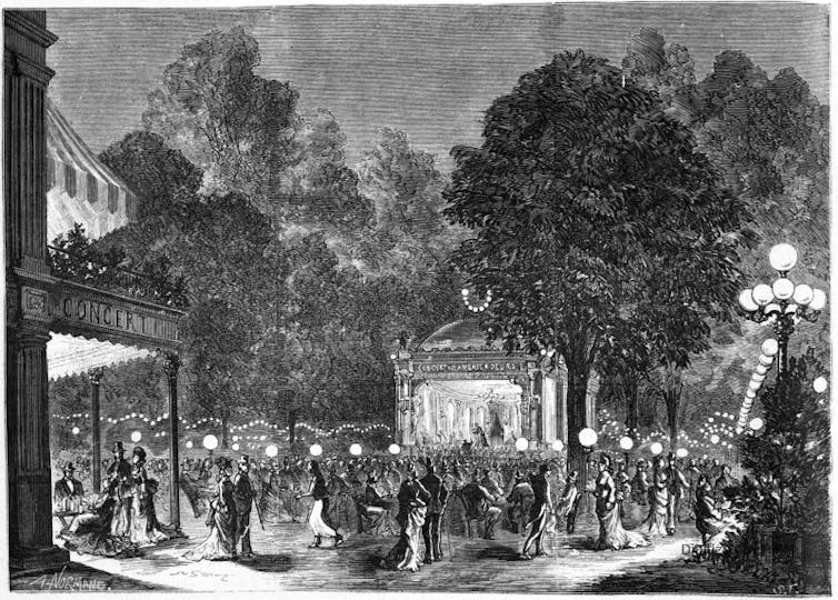 Il faut rentrer franchement dans le XIXe siècle pour voir s’épanouir dans les grandes villes l’ère du noctambulisme. D’abord, sous la Monarchie de Juillet, un noctambulisme élégant porté par les élites et des dandys qui revendiquent l’euphorie d’une vie à contretemps ; ensuite sous le Second Empire avec l’haussmannisation, la généralisation de l’éclairage au gaz, le développement des grandes artères commerciales et des grands magasins : le noctambulisme se répand alors dans les couches populaires, à la faveur des bals et des cabarets qui se démocratisent et des cafés-concerts qui se développent sur les Champs-Élysées. La pratique du couvre-feu avait alors disparu avant d’être brutalement restaurée pendant l’occupation prussienne de Paris en 1870.