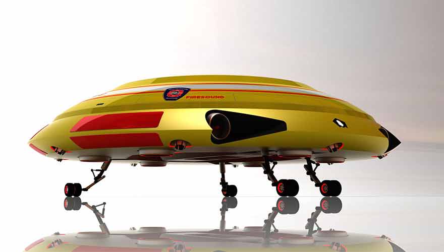 Sa dernière trouvaille consiste dans une soucoupe volante étrange : Firesound, un drone qui vole en sustentation au-dessus des forêts et zones à risques. D’un diamètre d’un mètre et d’une épaisseur de 30 cm, la soucoupe est fabriquée à l’aide de matériaux composites légers et fonctionnera à l’aide d’une pile à hydrogène non polluante, qui sera capable d’alimenter quatre turboréacteurs placés de chaque côté du Firesound.